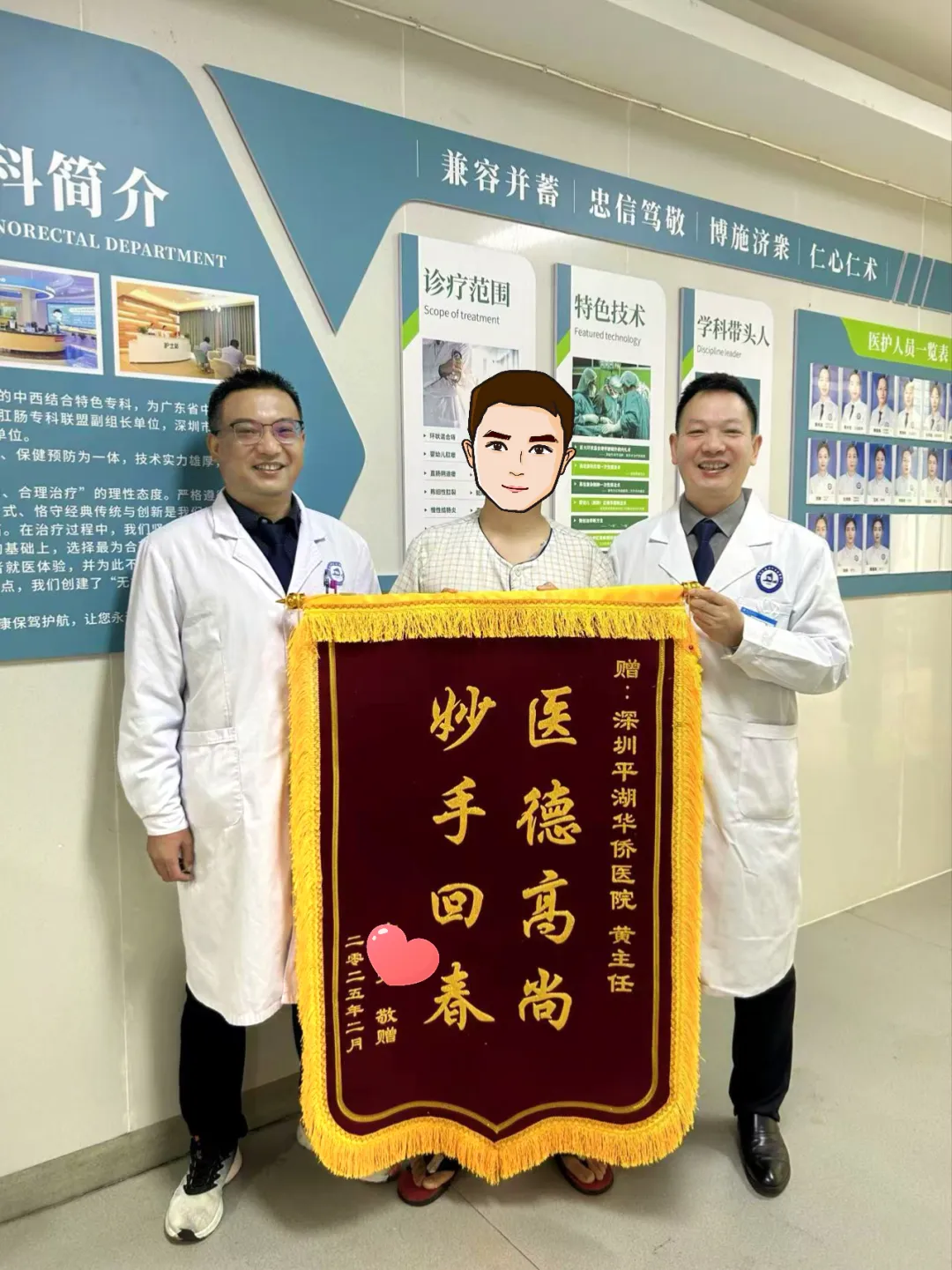 最近,苏先生(化名)遭遇了一场难言的烦恼。在深圳华侨医院肛肠科主任黄伟波妙手解顽疾,顺利帮苏先生化解了烦恼。为表达对黄伟波及全体医护人员的感激之情,他特意赠送了一面印有“医德高尚,妙手回春”的锦旗。他说:”这不仅是我对黄伟波主任医术的认可,更是对深圳华侨医院肛肠科的信任“。