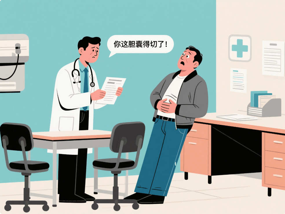 可好景不长,在一次社区义务植树活动后,周叔突然感觉到右上腹隐痛作痛。起初他以为是累着了,可后来这种不适感频繁造访,尤其吃完大餐后更甚,他才慌忙跑去医院复查。这一查才发现,结石不仅多了几颗,胆囊还发炎了。医生一脸严肃地说:“老哥啊,这胆囊得切了,不然炎症反复发作,后果不堪设想!”