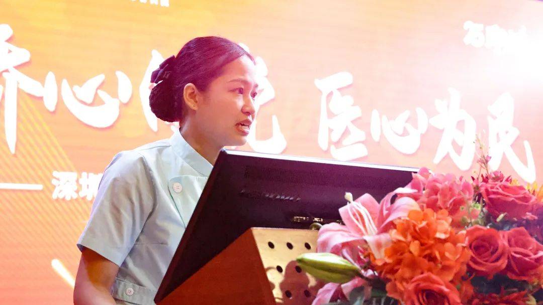 来自深圳华侨医院医务部、护理部、行政后勤部、社康的四位代表依次上台,从不同岗位视角分享华医人的使命与担当。