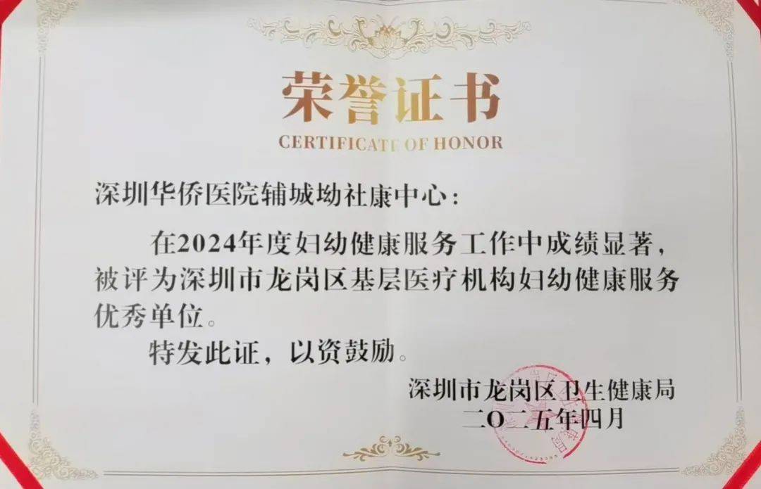喜报!深圳华侨医院辅城坳社康获评“妇幼健康服务优秀单位”