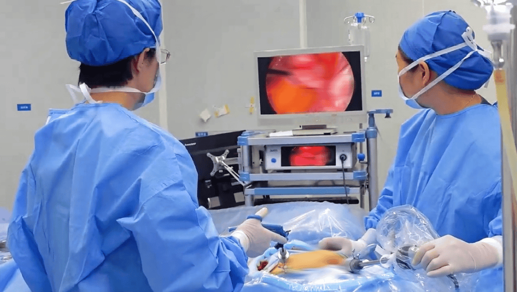 手术当天,面对夏女士的特殊情况,曹主任深知,既要有效消融肌瘤,又要避免损伤肠管及周围组织脏器。凭借多年经验,曹主任当机立断决定为夏女士实施腹腔镜监视下超声引导经皮子宫肌瘤消融术 + 盆腔粘连松解术。