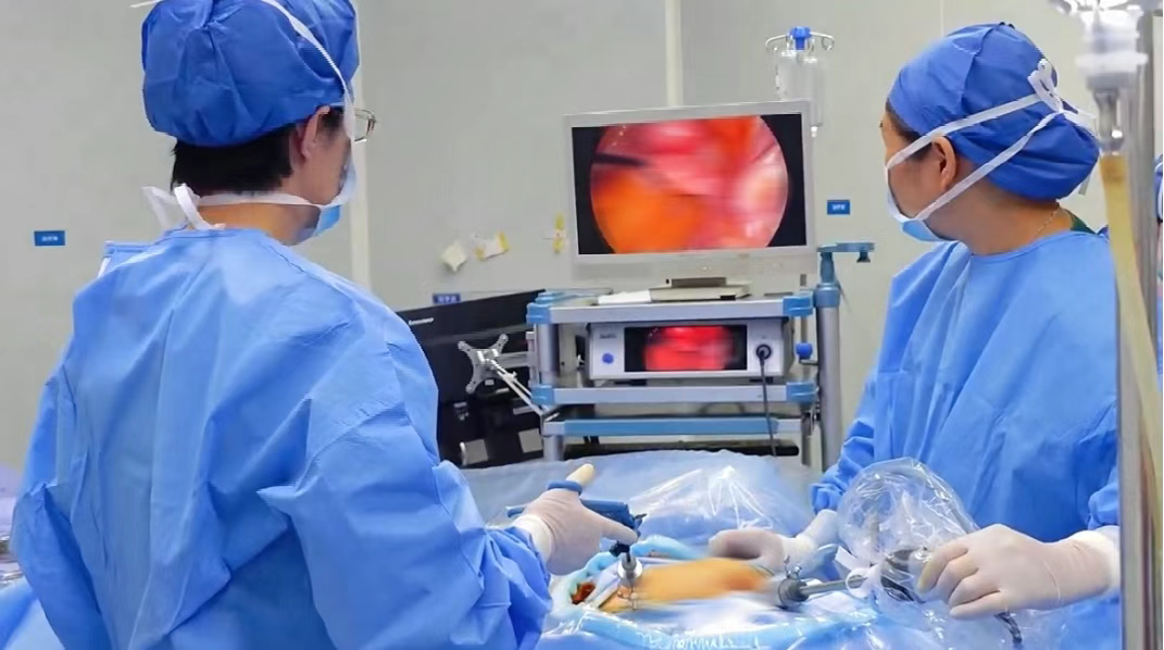 术前评估认为,张女士曾有过两次盆腔手术史,很可能存在肠粘连的情况,稍有不慎就可能损伤肠管或膀胱。曹培勇团队准备了完善的手术方案,先实施腹腔镜下肠粘连松解术,小心翼翼分离粘连组织,再通过超声的实时监控下,实施子宫肌瘤微波消融术,历经一个多小时,子宫肌瘤被逐一消融。