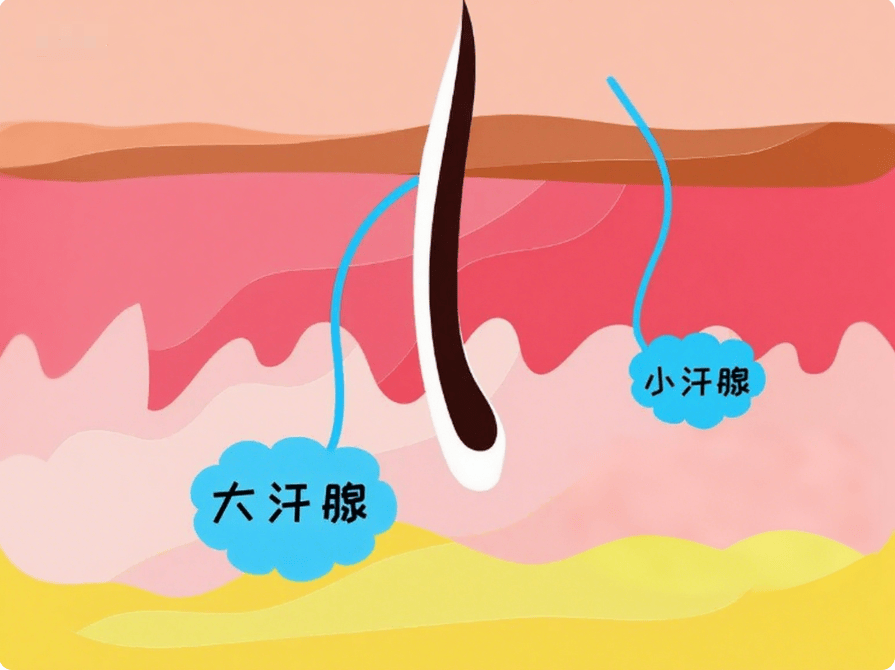 腋下异味主要源于大汗腺分泌的粘稠汗液(本身无味),其主要成分包括蛋白质、脂质等。小汗腺分泌的稀薄汗液(水、盐分)并非主要元凶。