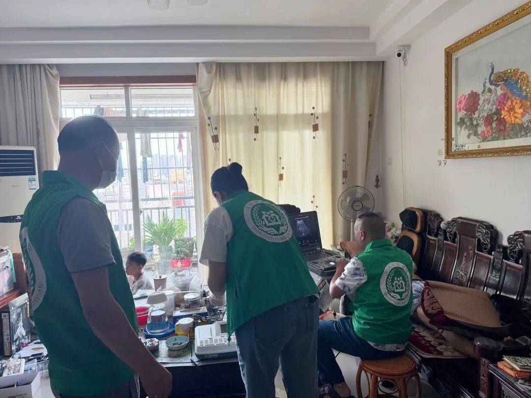 活动当日,由全科医生、公卫医生、B超医生及项目负责人组成的专业团队,携带新配备的便携式B超机、心电图机等医疗设备,在社区工作人员的引导下,依次前往凤凰新村、御峰园等小区,为多位老人提供上门体检服务。