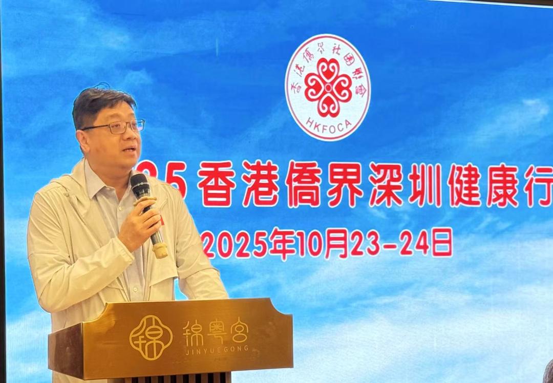 香港僑界社團聯會主席王欽賢表示 ,2025深圳健康行活動體現僑界社團聯會年輕領導傳承為僑服務宗旨,關心長者僑友 ,顯示聯會愛國愛港傳統薪火相傳。