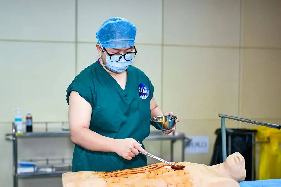在实操考核环节,丘嘉豪医生严格遵守无菌操作核心原则,动作规范流畅、流程精准高效。整个操作过程不仅充分展现了他过硬的专业技能与沉稳的心理素质,更在细节中传递出我院手术团队 “严谨务实、精益求精” 的职业精神,赢得了现场评委的一致认可与好评。