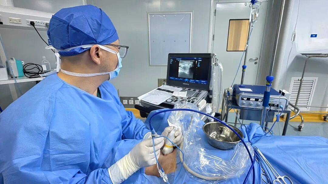 深圳华侨医院普外科开展的甲状腺微波消融术,是在超声实时引导下,将消融针精准穿刺至结节内部,释放微波能量。能量促使结节组织内水分子高频振动产热,使甲状腺结节凝固性坏死,后续坏死组织会被人体免疫系统逐渐吸收,从而达到治疗目的。是大多数甲状腺结节患者的选择。