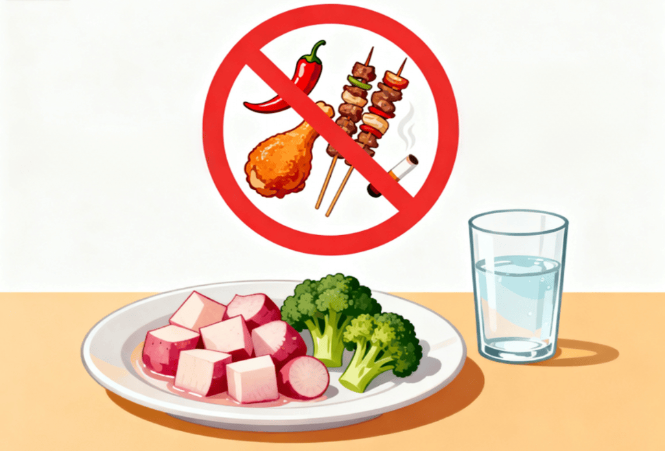 • 避免刺激性食物:减少辛辣、油炸、烧烤及烟酒的摄入,这些食物可能加重炎症反应。