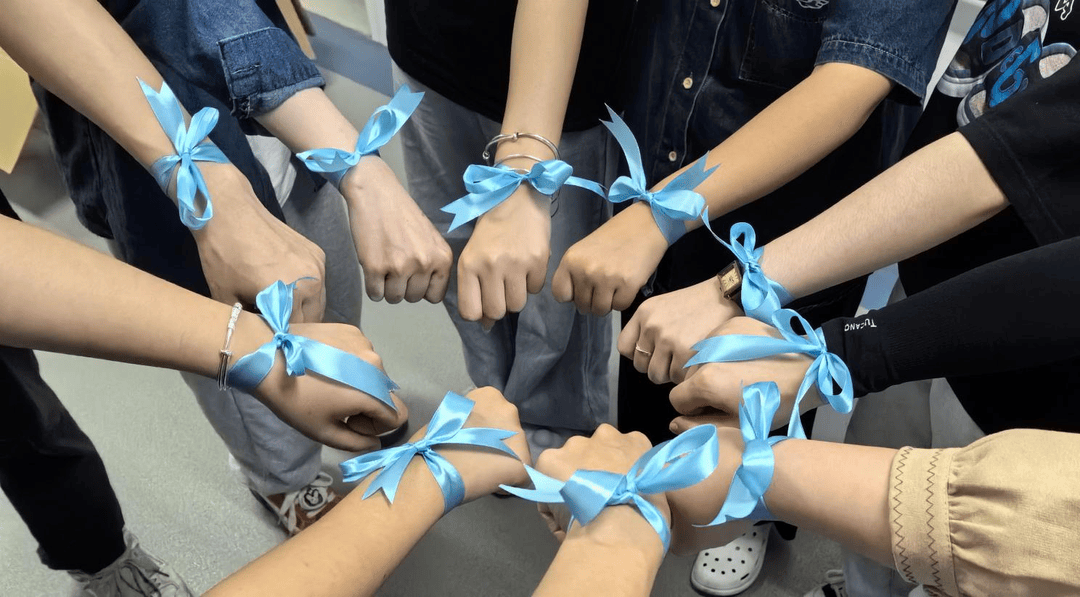 系上蓝丝带,让爱一起飞