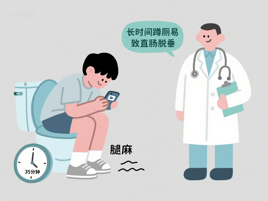 长时间蹲厕所是重要诱因。很多人边排便边看手机,导致如厕时间远超正常推荐的5-10分钟,甚至超过15分钟。长时间蹲厕会使腹压持续增大,极易诱发直肠脱垂。