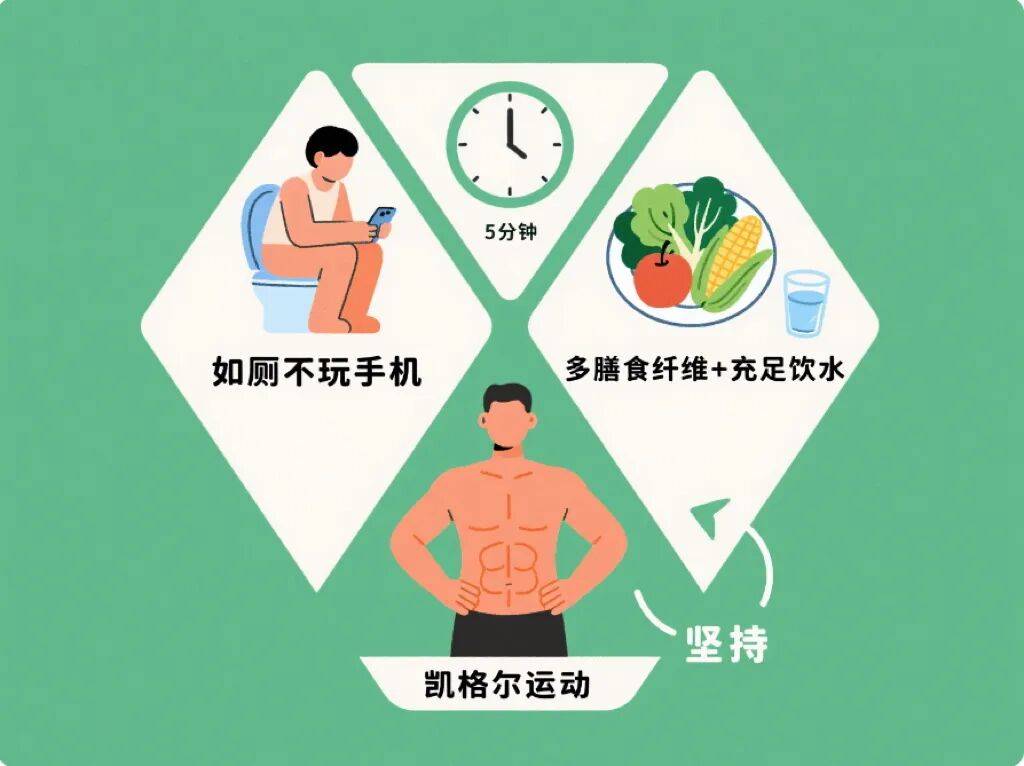 如厕时不玩手机、不看书,将时间控制在 5 分钟以内,避免长时间蹲厕。