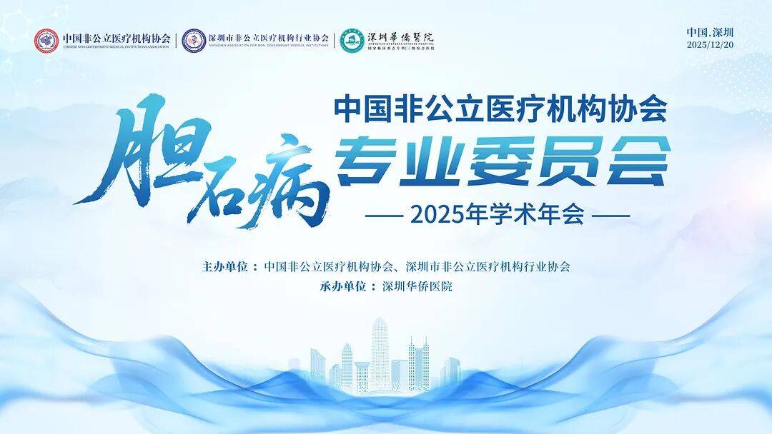 由中国非公立医疗机构协会胆石病专业委员会、深圳市非公立医疗机构行业协会联合主办,深圳华侨医院承办的 “中国非公立医疗机构协会胆石病专业委员会2025年学术年会”,将于 2025年12月20日在深圳华侨医院隆重举行。