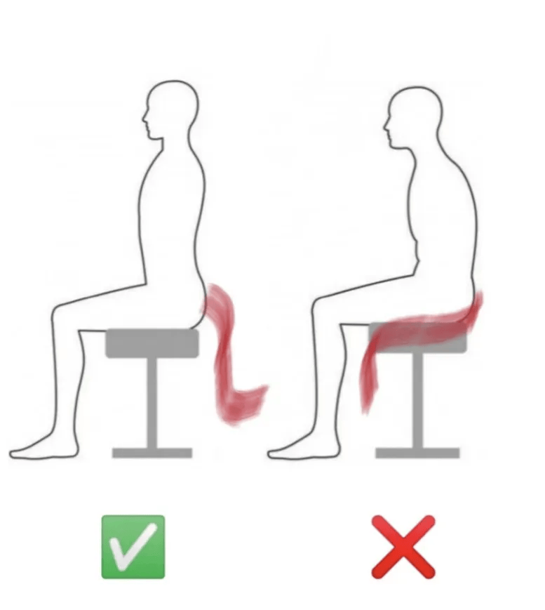 如果想要更省力、舒服一点,在保持腰椎正常生理曲度的前提下,可以后仰靠下来给腰背更多支撑。