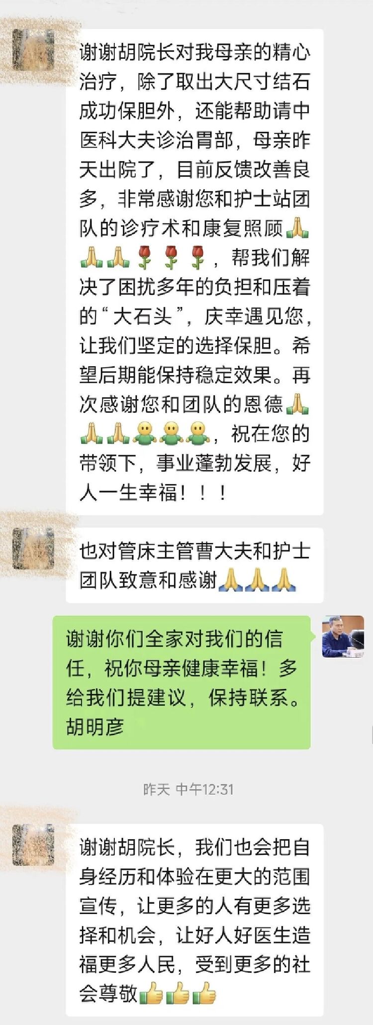 于奶奶出院后,其家属还专门发来微信,对胡明彦和医护团队再次表达感激之情。
