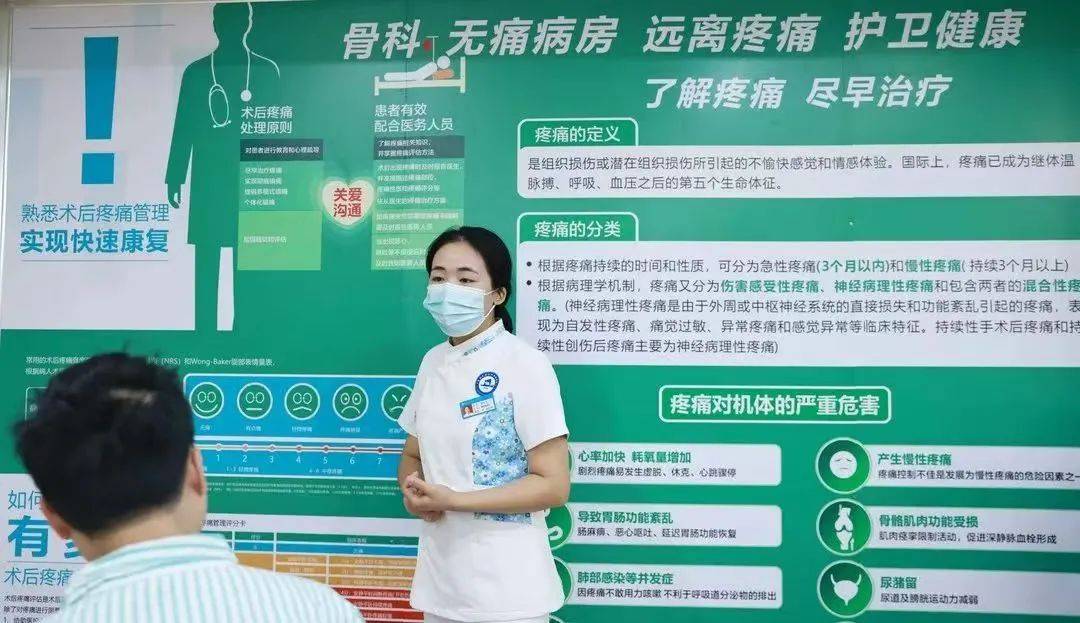 “无痛病房”,即疼痛规范化管理病房,通过医、护、患共同努力,尽可能地将患者的疼痛最小化,控制在微痛甚至无痛的范围内,使患者轻松、安全、舒适地度过围手术期和功能康复期。