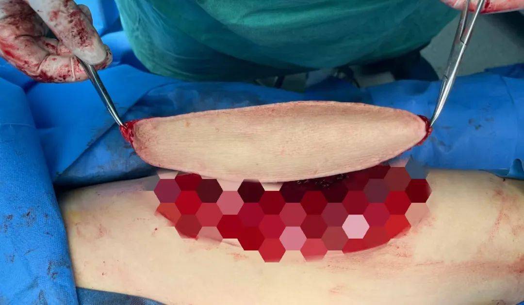 6月24日,手外科陈永德主任再次为周师傅施行了股前外侧游离皮瓣修复+左大腿创面缝合术。在显微镜的辅助下,将移植皮瓣覆盖在周师傅的创面上,修复了他右前臂外露的伤口,并成功将其移植的皮瓣神经、血管、皮肤进行缝合,每一个步骤都精准无误。