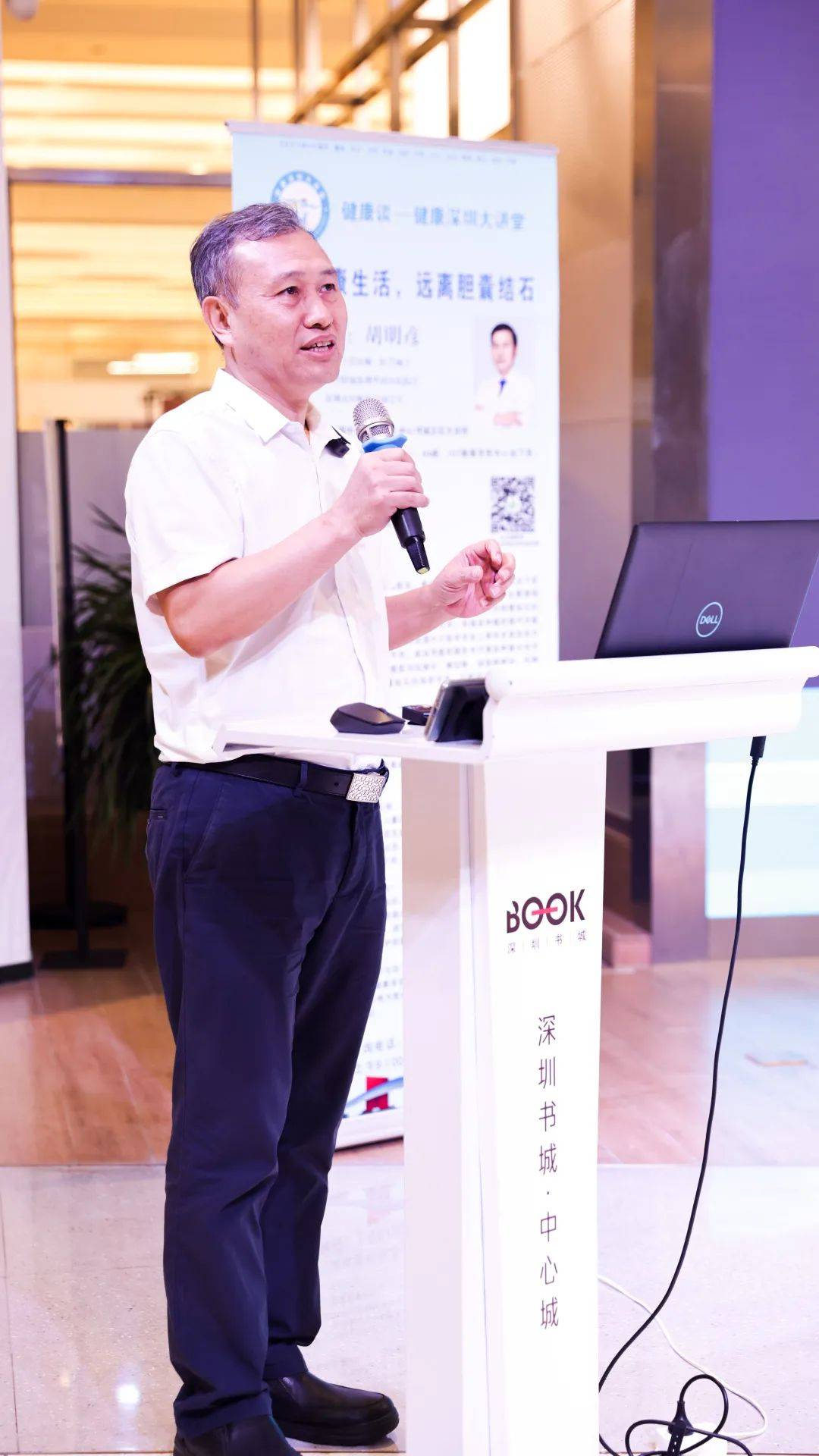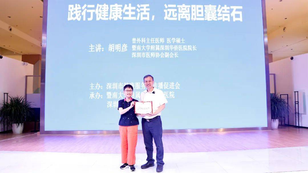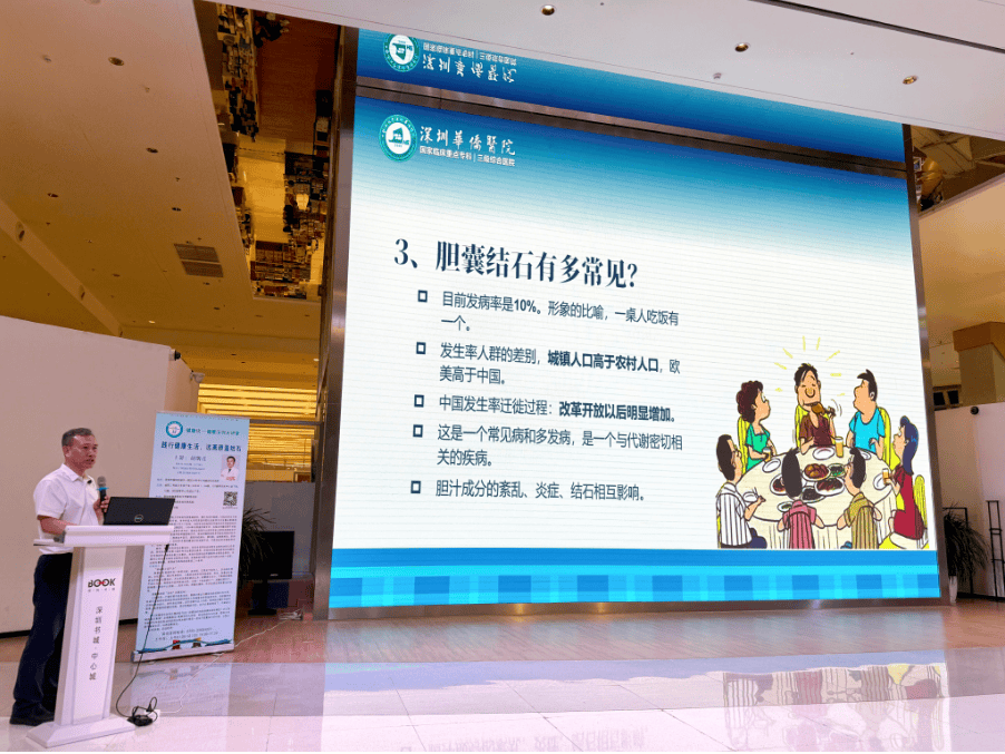 为进一步普及健康知识,传播健康理念,提高疾病预防意识, 7月21日,深圳市健康服务与传播促进会邀请深圳华侨医院胡明彦院长走进深圳中心书城“健康深圳大讲堂”,分享了一堂以《胆囊结石的预防与治疗》为主题的健康科普公益讲座。