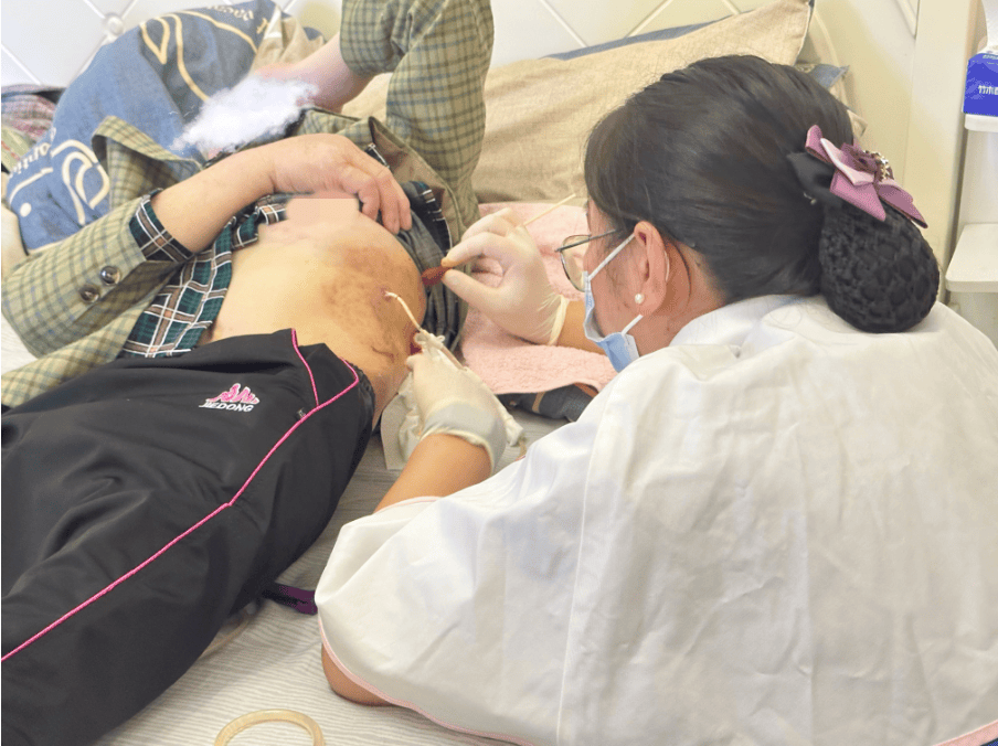 家住光明区的秦阿姨(化名)今年65岁了,因自身疾病原因在上个月做了胸腔引流手术,术后带着胸腔引流管在家休养,并且需要定期换药。近日,秦奶奶的家属通过深圳华侨医院微信公众号平台预约了上门护理服务。