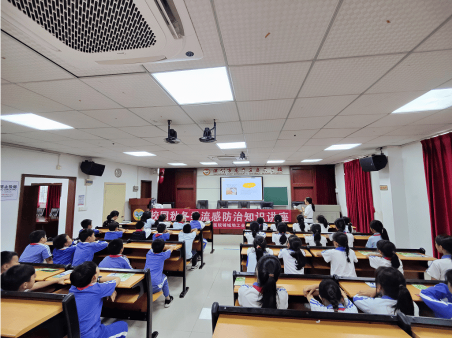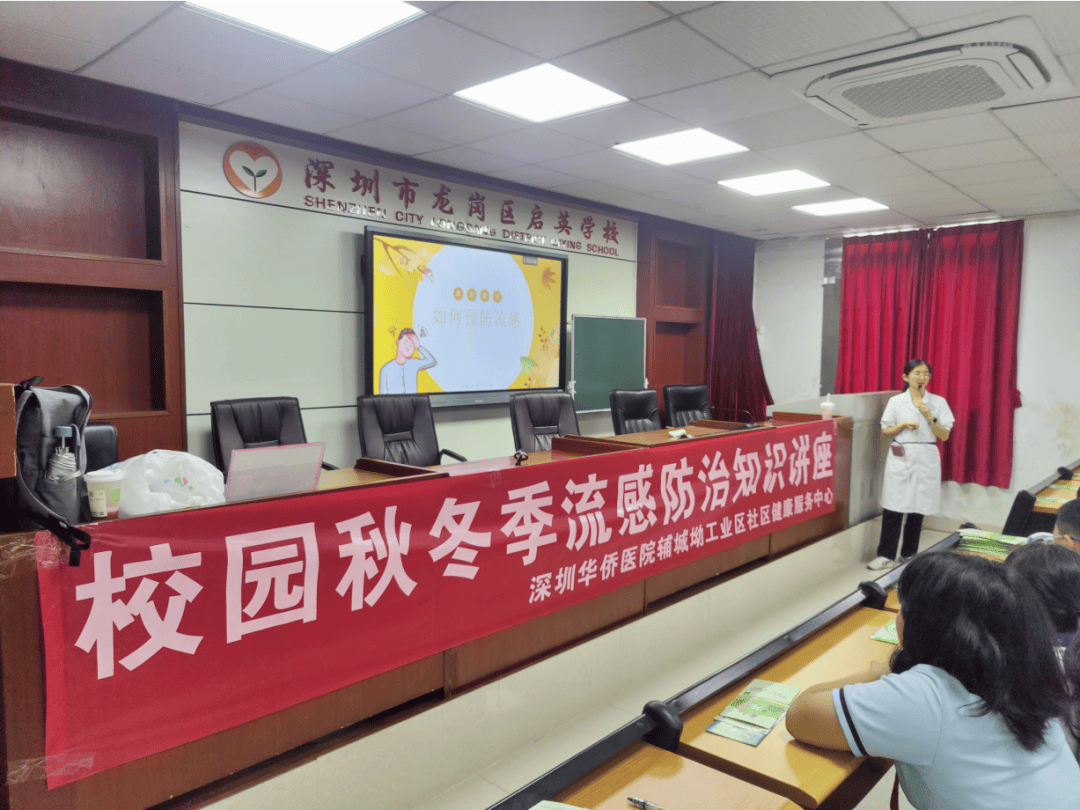 冬季来临,气温逐渐下降,流感等季节性呼吸道疾病进入高发期。为有效预防流感在校园内的传播,保障师生的身体健康,强化学生群体注意良好卫生习惯,近日,深圳华侨医院辅城坳社康站联合深圳市龙岗区启英学校开展了“校园秋冬季流感防治知识”专题讲座。