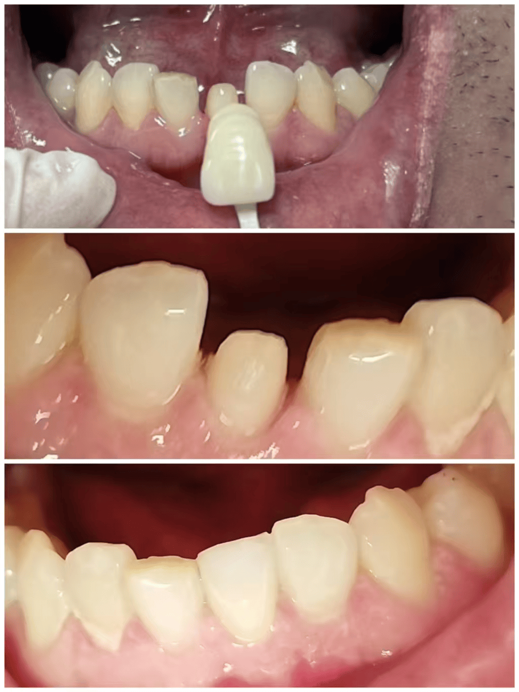重新填补:虽可快速恢复牙齿外形,但因吴先生存在深覆合问题,咬合紧密,补牙容易再次崩裂或脱落,且不能啃咬较硬食物。