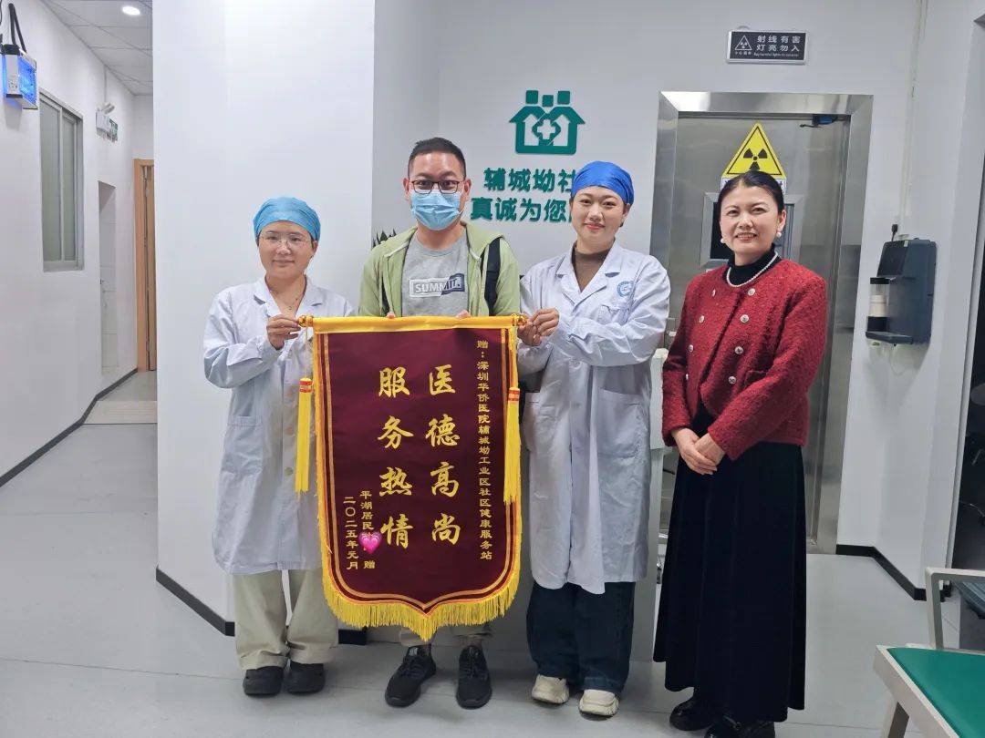 吴先生对牙齿修复效果赞不绝口。他表示,全瓷牙不仅恢复了牙齿的功能,更大大提升了外观与自信,使其在社交场合更从容自如。为表达感激之情,吴先生特意赠送了一面锦旗,感谢辅城坳社康站医护人员们专业的技术与无微不至的关怀。