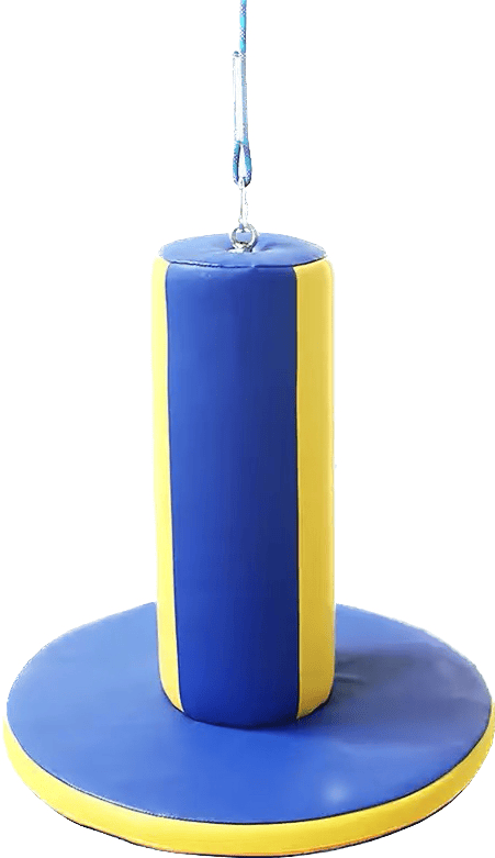 • 训练方法:儿童屈曲身体,用双手抱紧圆筒,双脚以圆筒底边为支撑点紧紧夹住,保持身体平衡,在指导者的协助下做旋转或360度大回转。